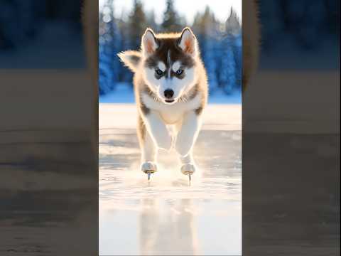 Dog Puppy Moving on Ice